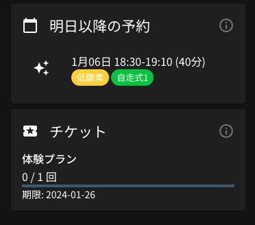 - 低酸素環境でのトレーニングを行う場合は、付与された”チケット”を1枚消費する必要があります。