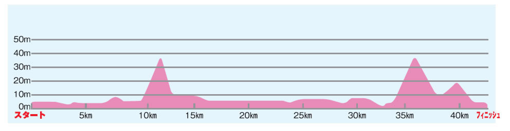 走った印象としてはそこまでキツくないですが、終盤35kmの坂はナカナカきついです。